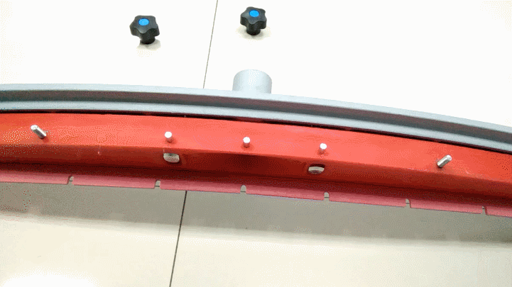 5.安裝壓條,窄邊朝自己,對(duì)齊孔,一一按進(jìn)橡膠內(nèi)件