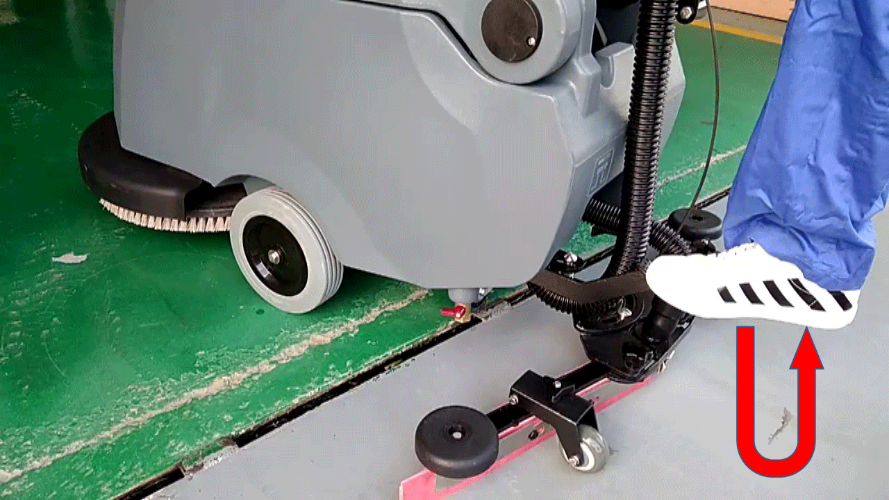 3.刷盤踏桿先往下踩到最底,再往右移動放開
