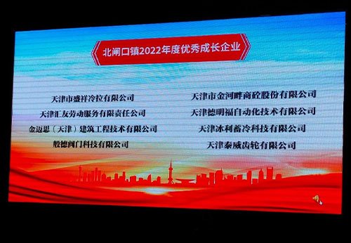 會(huì)議向2022年為天津市津南區(qū)北閘口鎮(zhèn)經(jīng)濟(jì)社會(huì)發(fā)展做出貢獻(xiàn)的企業(yè)表示感謝,般德閥門榮獲“2022年度優(yōu)秀成長企業(yè)”稱號(hào)。