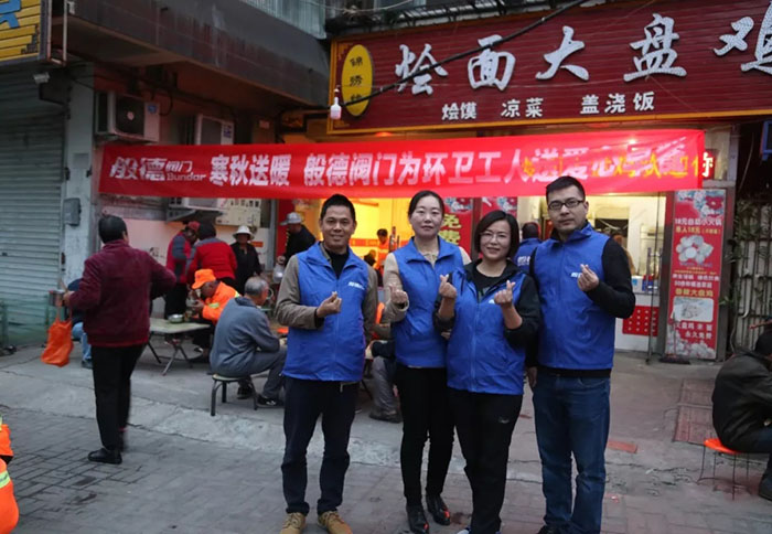 進(jìn)入10月,天氣逐漸寒冷起來(lái)。為大力弘揚(yáng)社會(huì)主義核心價(jià)值觀,充分彰顯城市文明,感謝環(huán)衛(wèi)工人每天為城市環(huán)境的辛勤付出,般德閥門承包了早餐店,為環(huán)衛(wèi)工人發(fā)放愛(ài)心早餐,給他們送去寒秋里的溫暖。