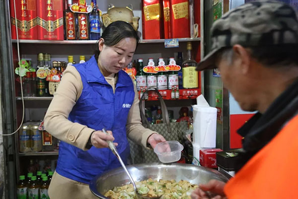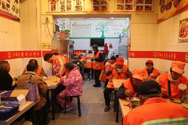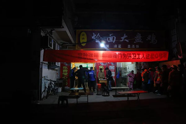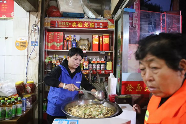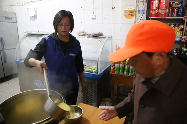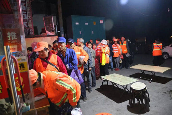 環(huán)衛(wèi)工人們穿著黃色的工作服,有秩序地排隊(duì)登記進(jìn)店吃早餐,每個(gè)人都會(huì)對(duì)志愿者們說(shuō)聲謝謝,他們沒(méi)有時(shí)間互相聊天,匆匆吃完飯就收拾東西奔赴工作地點(diǎn),趕在城市“蘇醒”之前,讓城市的面貌煥然一新。志愿者們也都加快了手上的工作,盡量減少環(huán)衛(wèi)工人們的等待時(shí)間,早點(diǎn)吃上一口熱乎乎的早餐,不耽誤他們的工作。