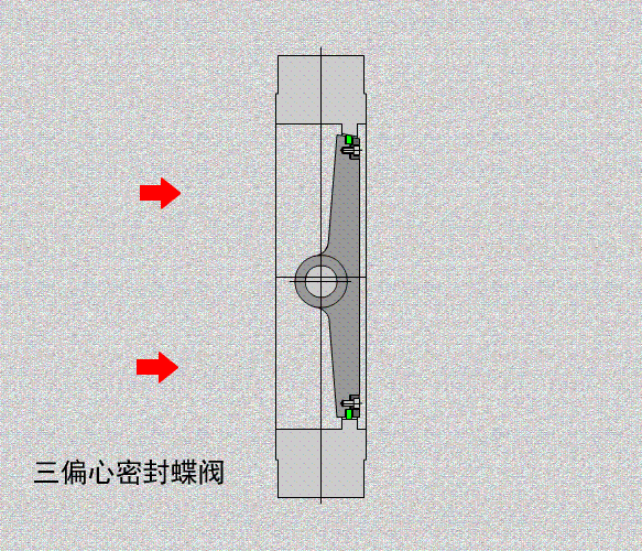 三偏心金屬密封蝶閥在雙偏心的基礎(chǔ)上增加了些個(gè)偏心角,不僅利用了原有的凸輪效應(yīng),而且完全消除了90°行程中閥座與密封圈之間的摩擦。
